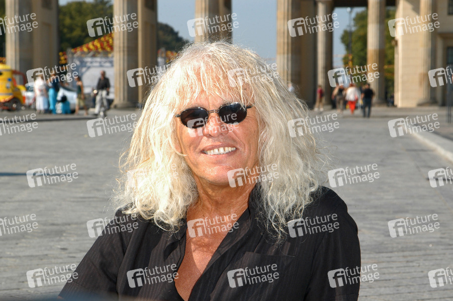 Photocall mit dem Sänger der ungarischen Rockband Omega am Brandenburger Tor in Berlin