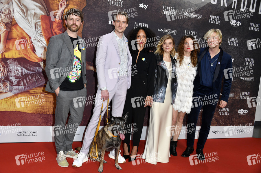 Friedrich Mücke, Daniel Sträßer, Ina Geraldine Guy, Alina Tomnikov, Anne Ratte-Polle und Albrecht Schuch bei der Premiere der Sky TV-Serie 'Funeral for a Dog' im Kino in der Kulturbrauerei. Berlin, 02.03.2022