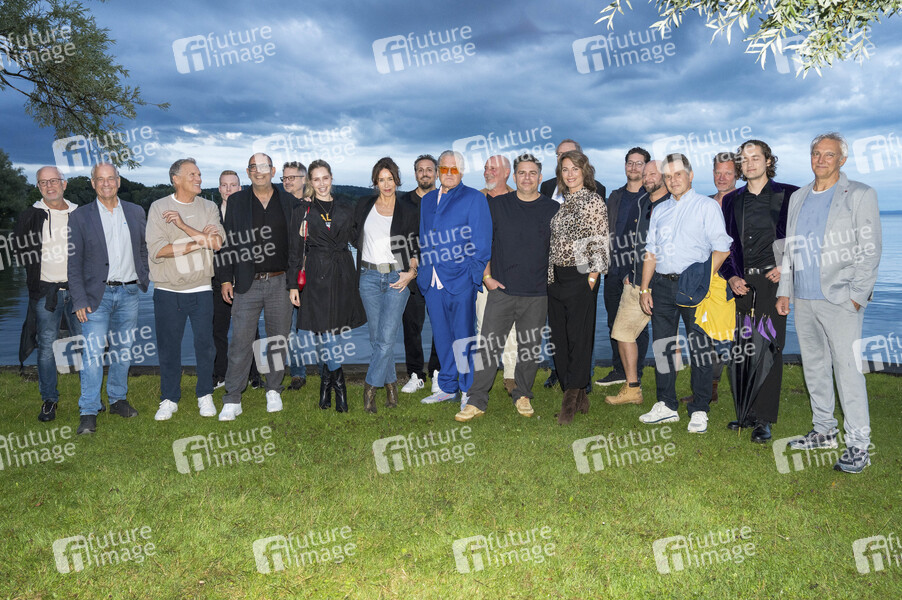 Christian Tramitz, Hannes Ringelstetter, Mitsou Jung, Katharina Müller-Elmau, Michael Brandner, Paul Sedlmeir, Susu Padotzke, Matthias Helwig mit Team und Cast bei der Premiere von zwei neuen Folgen der ARD-Vorabendserie 'Hubert ohne Staller' auf dem Open Air Starnberg 2025 im Open Air Kino im Seebad. Starnberg, 05.08.2025