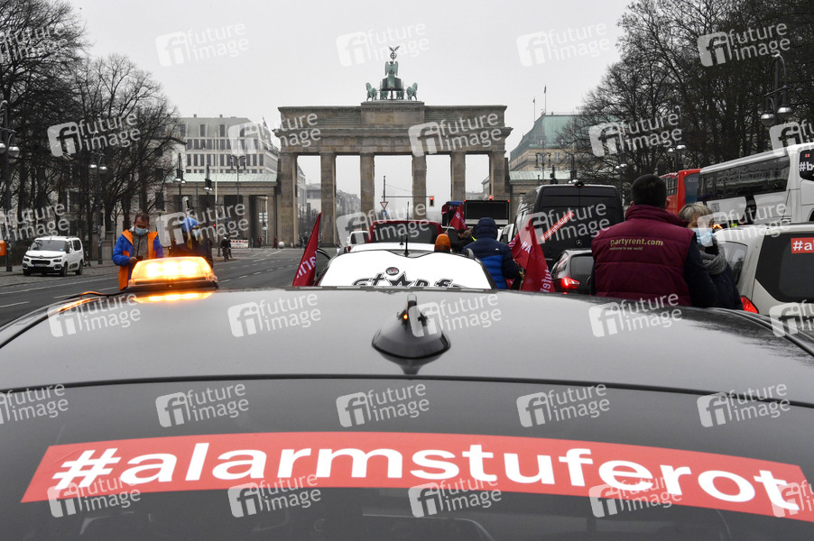 Nach 365 Tagen Lockdown in der Veranstaltungswirtschaft findet heute eine Auto-Demonstration zur Rettung der Veranstaltungswirtschaft vom Aktionsbündnis 'Alarmstufe Rot' statt. Berlin, 28.02.2021