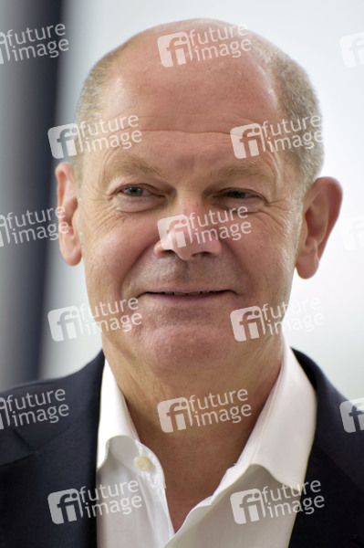 Olaf Scholz bei einem Statement nach einem Unternehmensbesuch bei der Merk KGaA im Innovation Center. Darmstadt, 26.08.2021