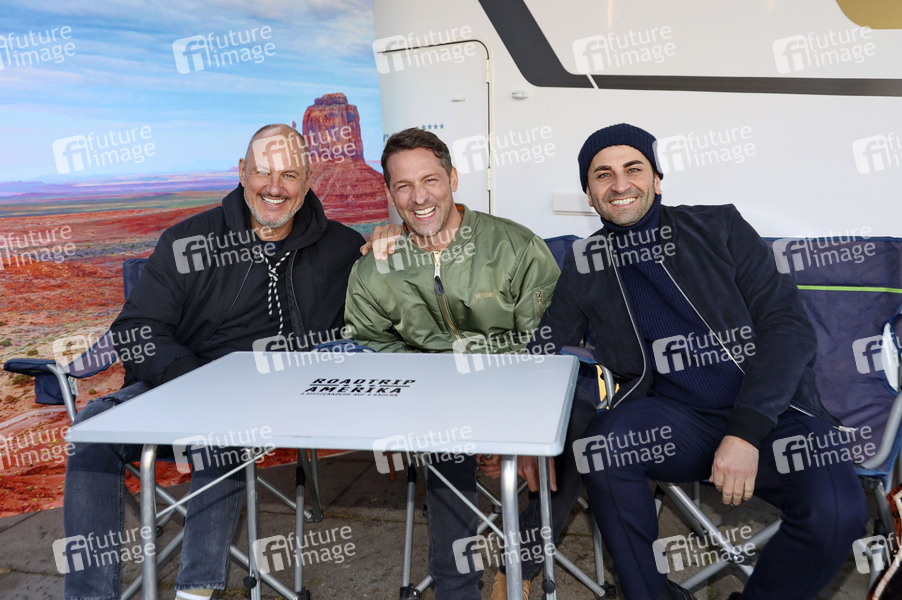 Frank Rosin, Alexander Kumptner und Ali Güngörmüs beim Pressetermin zur Kabel 1 Kochserie 'Roadtrip Amerika' in der Hafen City, Hamburg, 12.12.2022