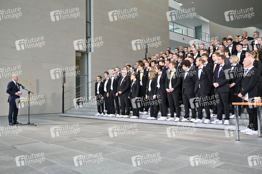 Olaf Scholz beim Empfang der Deutschen Berufe-Nationalmannschaft im Bundeskanzleramt. Deutschland erzielte beim WorldSkills-Wettbewerb, der erstmals dezentral in 15 Nationen auf der ganzen Welt ausgetragen wurde, das beste Ergebnis seit mehr als 17 Jahren. Berlin, 08.12.2022