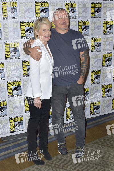 Linda Hamilton und Tim Miller beim Photocall zum Kinofilm 'Terminator: Dark Fate' auf der San Diego Comic-Con International 2019 im Hilton Bayfront Hotel. San Diego, 18.07.2019