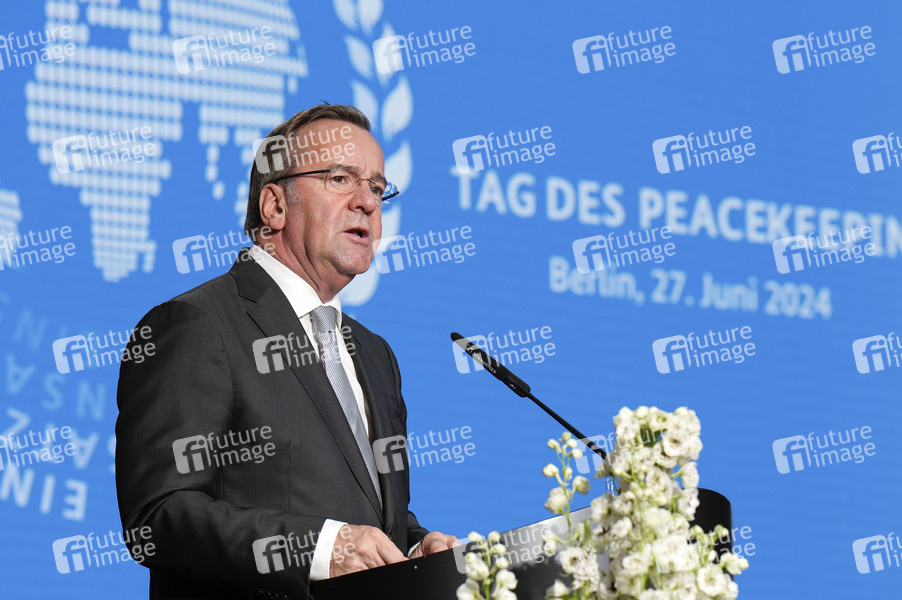 Boris Pistorius beim Tag des Peacekeeping 2024: Im Einsatz für Frieden, Sicherheit und Zuversicht im AXICA Veranstaltungszentrum am Brandenburger Tor. Berlin, 27.06.2024