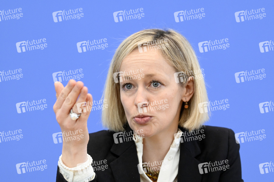 Louisa Specht-Riemenschneider bei der Bundespressekonferenz Digitale Gesundheitsdaten, Künstliche Intelligenz und Sicherheit - innovativ und datenschutzfreundlich. Vorstellung des 33. Tätigkeitsberichts für den Datenschutz und die Informationsfreiheit im Haus der Bundespressekonferenz. Berlin, 10.04.2025