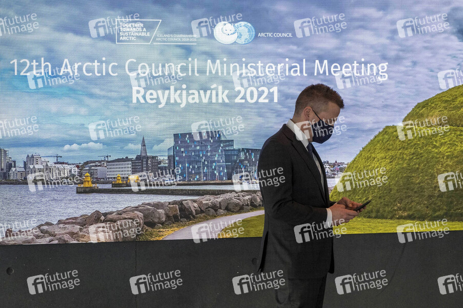 Außenminister Gudlaugur Thor Thordarson (Island) beim Treffen der Außeminister anlässlich der Sitzung des Arktischen Rates in der Harpa. Reykjavik, 20.05.2021