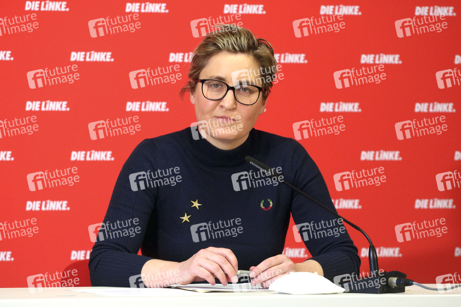 Susanne Hennig-Wellsow bei der Pressekonferenz der Partei Die Linke zu aktuellen politischen Themen im Karl-Liebknecht Haus. Berlin, 19.04.2021