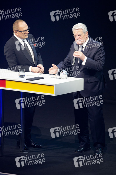Stefan Schulze-Hausmann und Joachim Gauck bei der Verleihung des 12. Deutschen Nachhaltigkeitspreises 2019 im Maritim Hotel. Düsseldorf, 22.11.2019