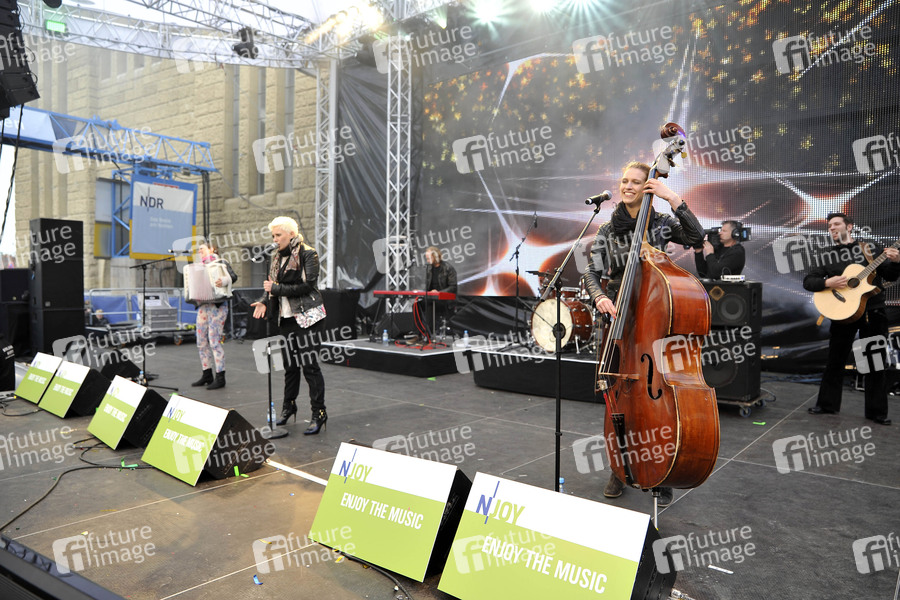 Yvonne Gruenwald, Elzbieta 'Ela' Steinmetz und Natalie Ploeger von Elaiza live auf der N-Joy Bühne zum 825. Hafengeburtstag an den Landungsbrücken. Hamburg, 11.05.2014