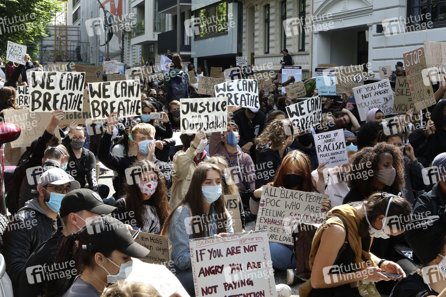 Demonstranten bei der 'Justice for Floyd - Stop killing blacks' Kundgebung vor dem US-Konsulat, Hamburg, 05.06.2020.
