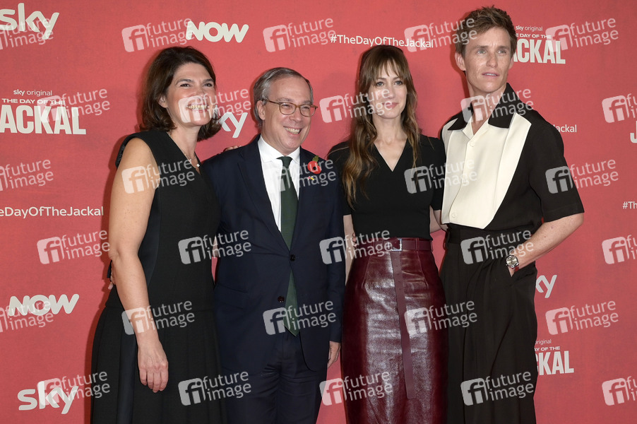 Anne Llewellyn, Edward Llewellyn, Hannah Bagshawe und Eddie Redmayne bei der Premiere der Sky Serie 'The Day of the Jackal' in der Villa Wolkonsky. Rom, 07.11.2024