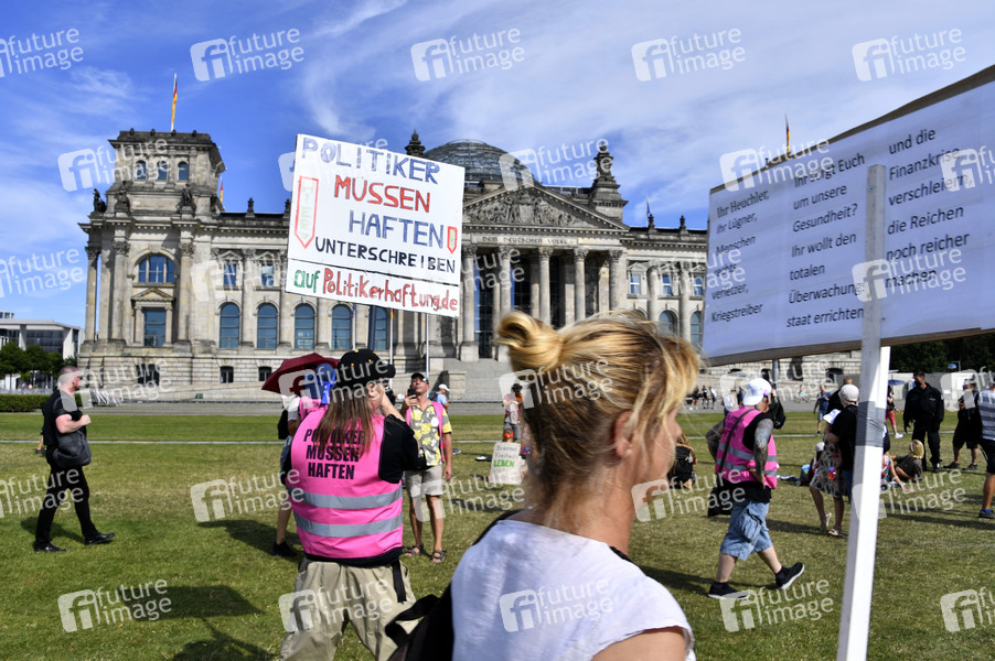 Mehrere Tausend Menschen bei der Demonstration und Kundgebung gegen die Corona-Politik der Bundesregierung unter dem Motto 'Das Ende der Pandemie - Der Tag der Freiheit' von der Straße Unter den Linden zur Straße des 17. Juni. Berlin, 01.08.2020
