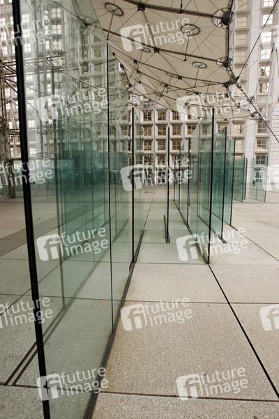 Glasscheiben, Windschutz, La Grande Arche de la Fraternité, modernes Bauwerk in Form eines Triumphbogens, erbaut zwischen 1984 und 1989 auf Initiative des damaligen Präsidenten François Mitterrand, Entworfen von Johan Otto von Spreckelsen und Paul Andreu, Höhe ca. 111 m, Breite ca. 107 m, Länge 112 m, 35 Etagen