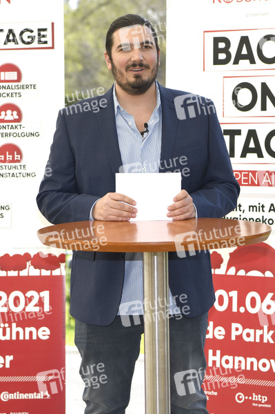 Nico Röger beim 'Back on Stage'-Pressetermin von Hannover Concerts zur Vorstellung vom Konzertsommer 2021 mit Fury in the Slaughterhouse auf der Gilde Parkbühne. Hannover, 16.04.2021
