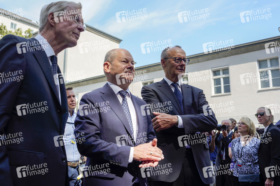 Robert von Steinau-Steinrück, Olaf Scholz und Friedrich Merz bei der Gedenkveranstaltung zum 80. Jahrestag des Aufstands gegen Nationalsozialistische Gewaltherrschaft mit Kranzniederlegung auf dem Ehrenhof des Bendlerblocks.Berlin, 20.07.2024