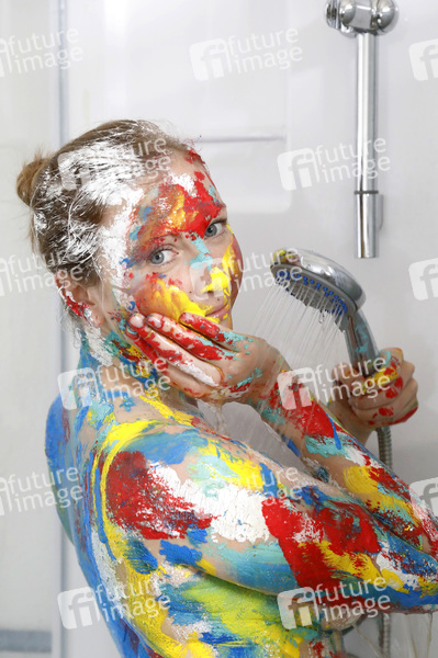 Dusche, duschen, Bodypainting, Body-Painting, Akt, nackt, Distanz Art, Distance Bodyart, Körperkunst, Körperfarben, Farbe, Bemalung, Kunst, Malerei, Bodyart, Kontaktverbot, Mindestabstand, Social Distancing, Abstand, Abstandhalten, Abstandsregel, Atemschutz, Atemschutzmaske, Virenschutz, Schutzmaske, Schutzmasken, Atemschutzmasken, Maske, Masken, Mundschutz, Mund-Schutz, Mund-Nase-Schutz, Mund-Nasen-Schutz, MNS, Corona, Sars-CoV-2, Covid-19, Coronavirus, Coronaviren, Corona-Virus, Coronakrise, Corona-Krise, Corona-Pandemie, Coronamaßnahmen, Corona-Schutz, flatten the curve, Ausnahmesituation