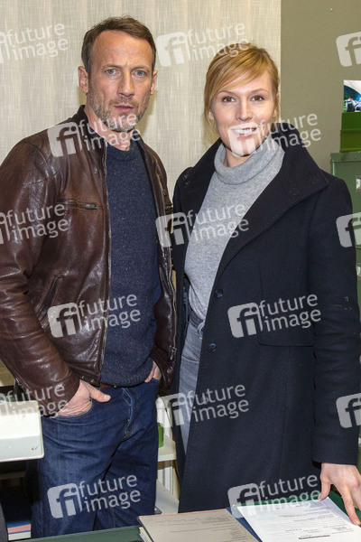 Kriminalhauptkommissar Thorsten Falke und Polizeioberkommissarin Julia Grosz in 'Tatort', Prominenz, TV, Fernsehen, Krimi, Filmset, Fotocall, Photocall, Settermin, Dreharbeiten, TV-Film, Krimireihe, Serie, ARD, Das Erste, NDR, Schauspieler, Schauspielerin