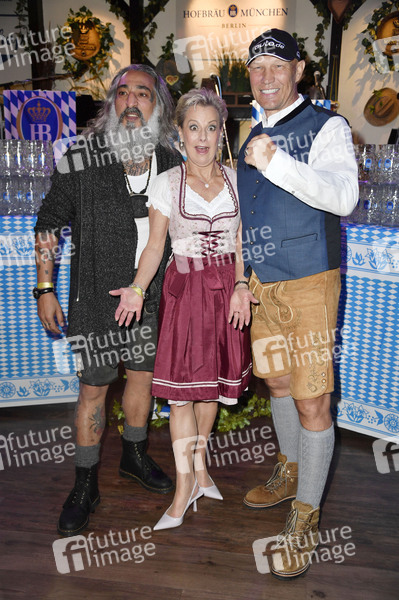Senay Gueler, Tanja Schumann und Axel Schulz beim Wiesn-Anstich zum Oktoberfest 2022 im Hofbräu Berlin. Berlin, 17.09.2022