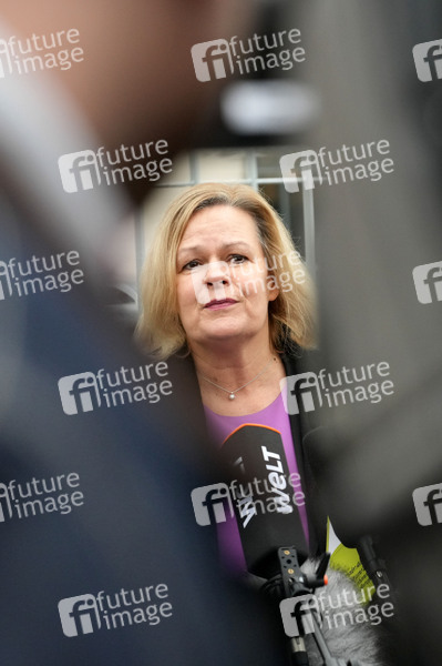 Nancy Faeser bei einer Pressekonferenz zum Nationalen Aktionsplan gegen Menschenhandel und Gewaltstrategien vor dem Bundeskanzleramt. Berlin, 11.12.2024