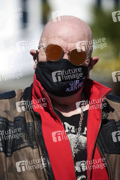 Eddy Kante beim Photoshooting mit seiner Mund-Nase-Maske von Elbdirndl. Hamburg, 24.04.2020