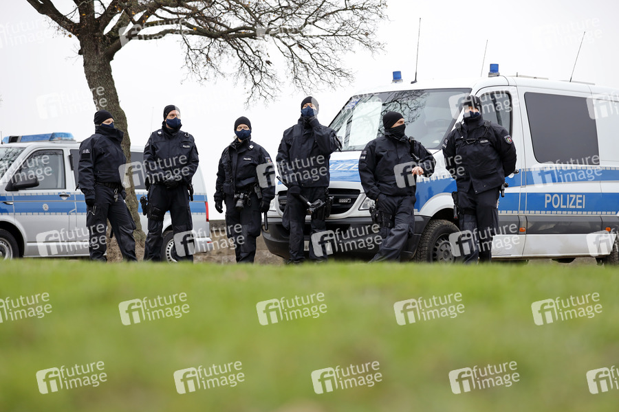 Polizeiaufgebot anlässlich der Querdenken-Demo im Rheinpark Golzheim. Düsseldorf, 06.12.2020