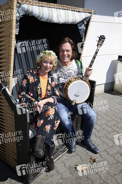 Madeleine Lierck–Wien und Jürgen Drews beim Fototermin am Set der ARD TV-Serie 'Rote Rosen' in den Rote Rosen-Studios. Lüneburg, 17.04.2019