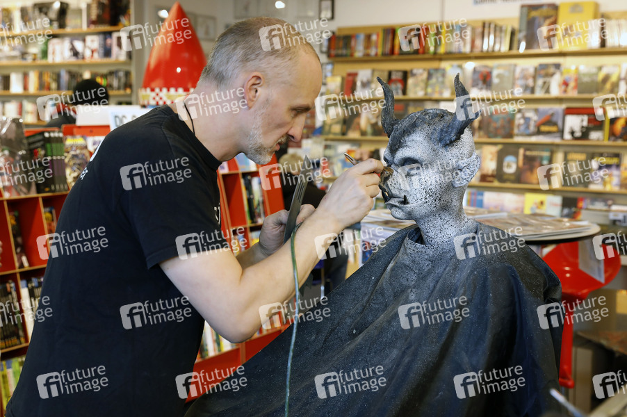 Enrico Lein und Marlena Wieland bei der GEEK ART Live-Painting-Aktion zum Gargoyle Photoshooting in der Comicbuchhandlung Comix. Hannover, 28.11.2019