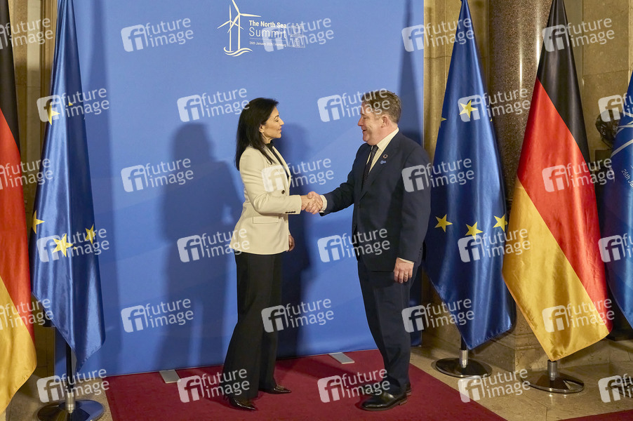 Katherina Reiche (Bundesministerin für Wirtschaft und Energie) und Darragh O'Brien (Minister für Klima, Energie und Umwelt, Irland) beim 3. internationalen Nordsee-Gipfel 2026 auf Ebene der Regierungschefinnen und -chefs sowie der Energieministerinnen und Energieminister im Rathaus. Ziel des Gipfels ist es, den grenzüberschreitenden Ausbau der Offshore-Windenergie, den Wasserstoffmarkt und zugleich eine leistungsfähige und vernetzte Offshore-Infrastruktur im gesamten Nordseeraum weiter voranzutreiben. Hamburg, 26.01.2026