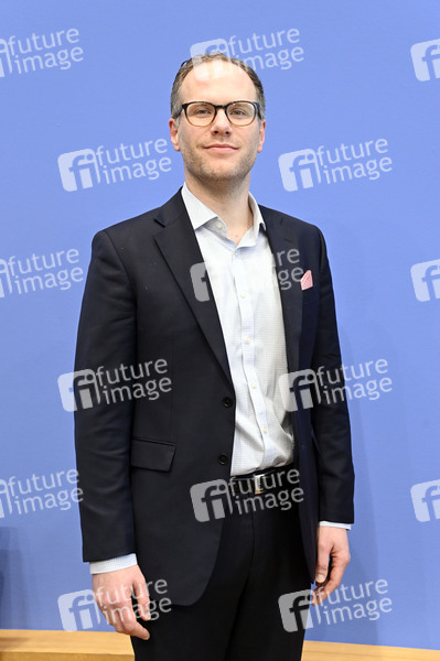Philipp Denker bei der Bundespressekonferenz zur Vorstellung des Gutachten des Nationalen Normenkontrollrats zu 'Bündelung im Föderalstaat - zeitgemäße Aufgabenorganisation für eine leistungsfähige und resiliente Verwaltung' im Haus der Bundespressekonferenz. Berlin, 03.02.2025