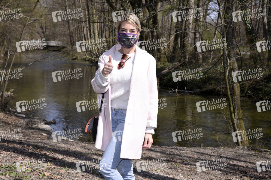 Moderatorin, Entertainment, Prominenz, Celebrities, Celebrity, Fotoshooting, Photoshooting, Coronakrise, Corona-Krise, Corona, Covid-19, Coronavirus, Coronaviren, Corona-Virus, Corona-Viren, Ausgangasbeschränkung, Ausgangsbeschränkungen, Coronamaßnahmen, Ansteckungsgefahr, Abstandhalten, Abstandsregel, Abstandsregeln, Vorbeugung, Prävention, Ausnahmezustand, Corona-Schutz, Maßnahmen, Coronamaßnahmen, Corona-Regeln, Corona-Maßnahmen, ausbleibende Kunden, geschlossene Geschäfte, Atemschutz, Atemschutzmaske, Virenschutz, Schutzmaske, Mundschutz, Mund-Schutz, Mund-Nase-Schutz, Mund-Nasen-Schutz, MNS