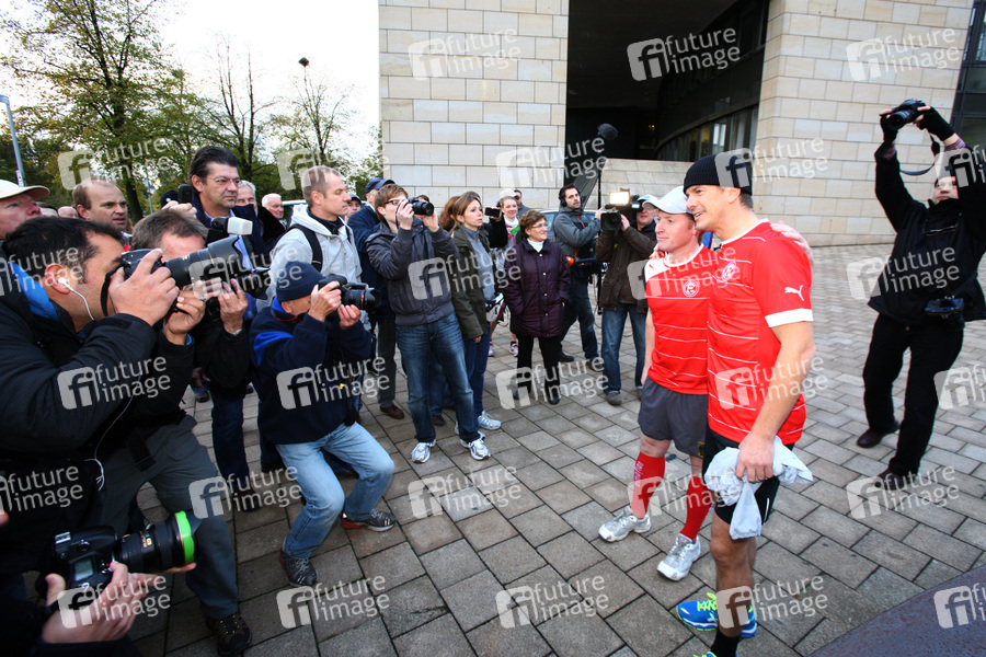 'Wetten dass...?''-Moderator Markus Lanz löst seine verlorene Wette mit einem Lauf von Düsseldorf nach Köln ein