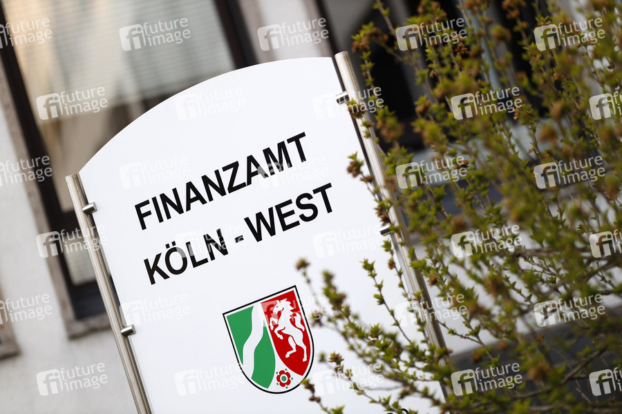 Schild am Finanzamt. Köln, 25.04.2020
