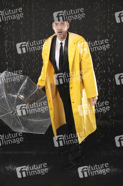 Fotoshooting, Unterhaltung, Entertainment, Kultur, Singin' in the Rain, Singing in the Rain, Musical, Regen, Wetter, Regenschauer, Nieselregen, Platzregen, Niederschlag, Gewitter, Wasser, Wetterprognose, Wettervorhersage, Regenschirn, Schirm, Regenjacke, Südwester, Regenkleidung, Regenwetter, Symbolbild, Symbolfoto