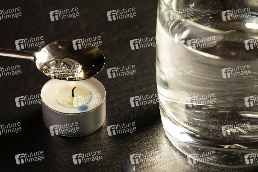 Zinn, Tradition, Schmelzen, Bleigießen-Verbot, Kerze, Schmelzlöffel, Kerzenflamme, Wasserglas, Silvesterbrauch, Jahreswechsel, Symbolbild, Themenbild