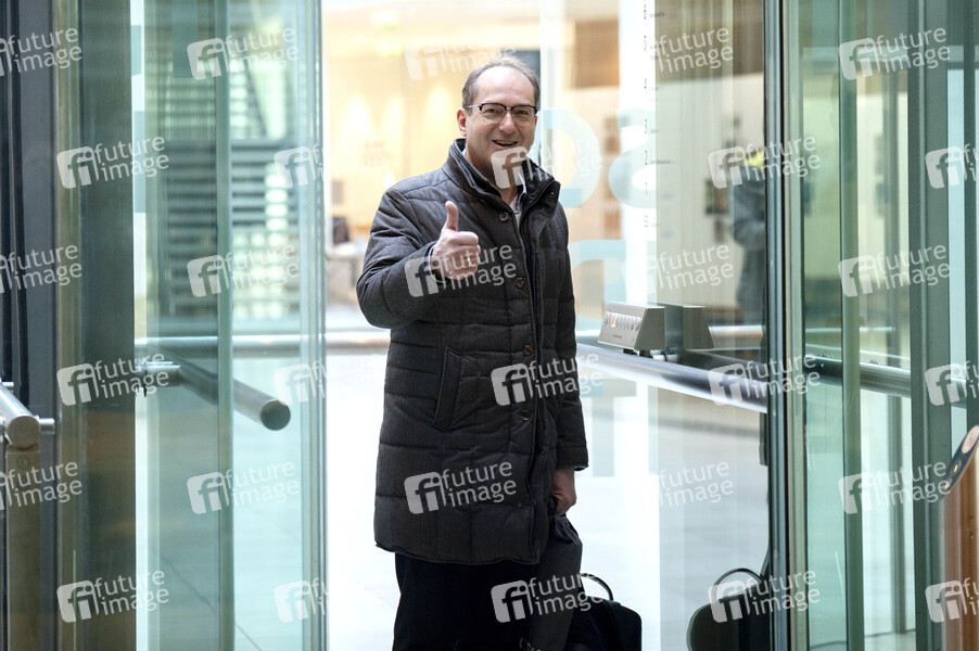 Alexander Dobrindt beim gemeinsamen Auftaktstatement der Parteivorsitzenden von CDU, CSU und SPD zur Bildung einer neuen Regierungskoalition im Willy-Brandt-Haus. Berlin, 28.03.2025