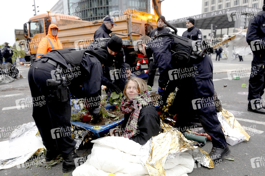 Aktivisten der Klimabewegung 'Extinction Rebellion' blockieren den Potsdamer Platz. Berlin, 08.10.2019
