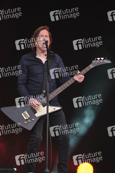Kai Schiering von Terry Hoax live beim Autokultur-Konzert auf dem Schützenplatz. Die Besucher verfolgen unter Berücksichtigung klarer Hygiene-Vorschriften während der Corona-Krise den Auftritt aus dem Auto. Hannover, 10.05.2020