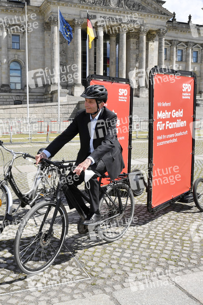 Rolf Mützenich bei einer Aktion über die Bilanz der Arbeit der SPD-Bundestagsfraktion vor dem Reichstagsgebäude. Berlin, 20.05.2021