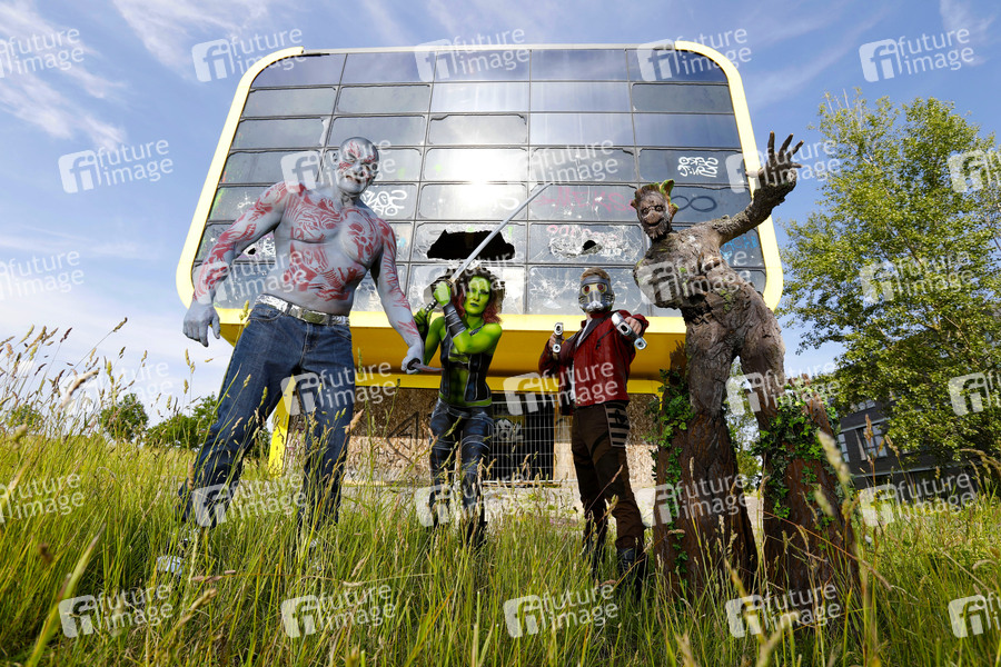 GEEK ART - Bodypainting meets SciFi, Fantasy and more: 'Guardians of the Galaxy' Photoshooting mit Janina Stein als Gamora, Fred Krull als Drax, Enrico Lein als Groot und Paul Skupin als Star-Lord auf dem Expo Gelände. Laatzen, 25.06.2019 - Ein Projekt des Fotografen Tschiponnique Skupin und des Bodypainters und Transformakers Enrico Lein