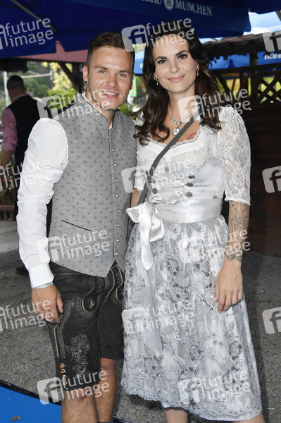 Henning Merten und Denise Kappes bei der Angermaier Trachtennacht 2022 im Hofbräu Berlin. Berlin, 25.08.2022