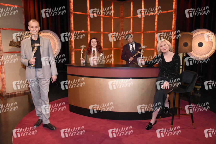 Max Uthoff, Tahnee, Sebastian Krämer und Maren Kroymann bei der Verleihung vom Bayerischen Kabarettpreis 2020 im BR-Studio. Unterföhring, 26.10.2020