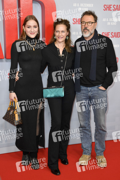Nina Kronjäger mit Tochter Lucille und Sebastian Koch bei der Premiere des Kinofilms 'She Said' im Kino International. Berlin, 29.11.2022