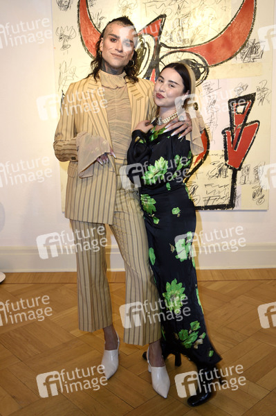 David Jakobs und Sandra Bulldock bei der Eröffnung der Alexander Höller Ausstellung 'F*CK THEM' in der Galerie Schmalfuss. Berlin, 19.08.2021