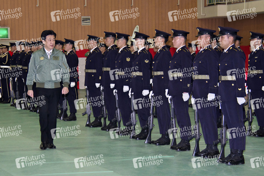 Japans Verteidigungsminister Minoru Kihara besucht die Ground Self-Defense Force System Communications System & Cyber School im Camp Kurihama. Yokosuka, 31.03.2024