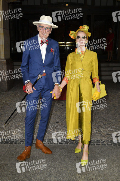 Günther Krabbenhöft und Britt Kanja bei der Anja Gockel Fashionshow Summer 2021 'Asuka' im Hotel Adlon Kempinski. Berlin, 30.06.2020