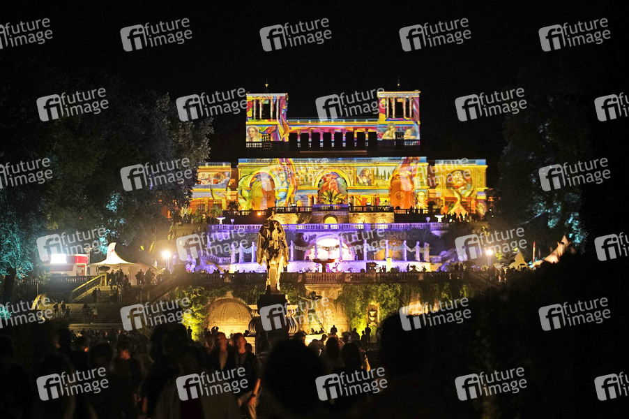 Lasershow bei der XXI. Potsdamer Schlössernacht 2019 im Schlosspark Sanssouci. Potsdam, 17.08.2019