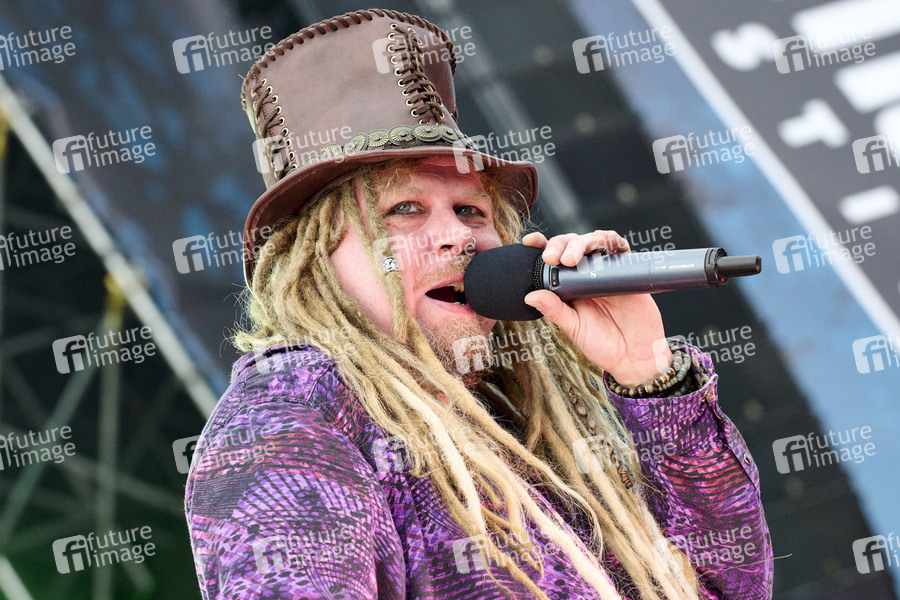 Jonne Järvelä von Korpiklaani live auf dem Summerside Festival 2024 beim Flugplatz. Grenchen, 21.06.2024