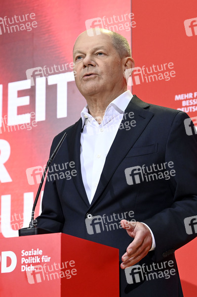 Olaf Scholz beim Pressestatement zum Jahresauftakt des SPD-Präsidiums im Willy-Brandt-Haus. Berlin, 05.01.2025