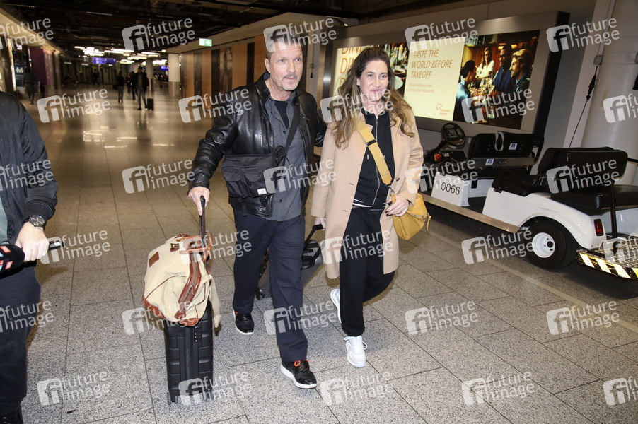 Hardy Krüger jr. mit Ehefrau Alice Krüger bei der Abreise der Dschungelcamp-Kandidaten der RTL Reality-TV-Show 'Ich bin ein Star - holt mich hier raus' nach Australien auf dem Flughafen Frankfurt am Main. Frankfurt, 16.01.2026